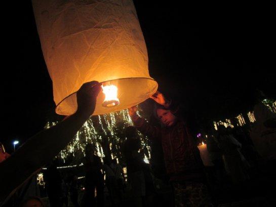 Vi fandt nogle lanterner lige som sidst vi var i Thailand. Dem tændte vi og sendte op i nattehimlen. Godt nytår!