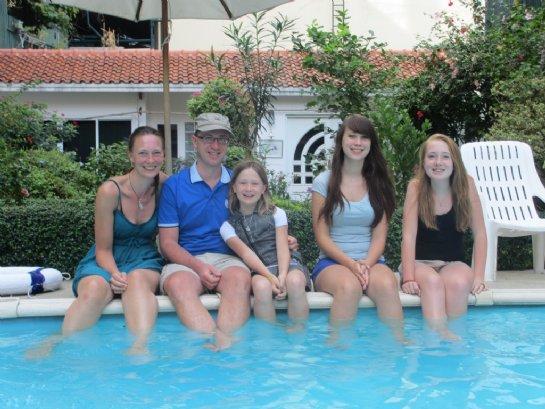 Her er et billede af hele familien ved poolen den sidste dag i Bangkok og dermed i ferien.